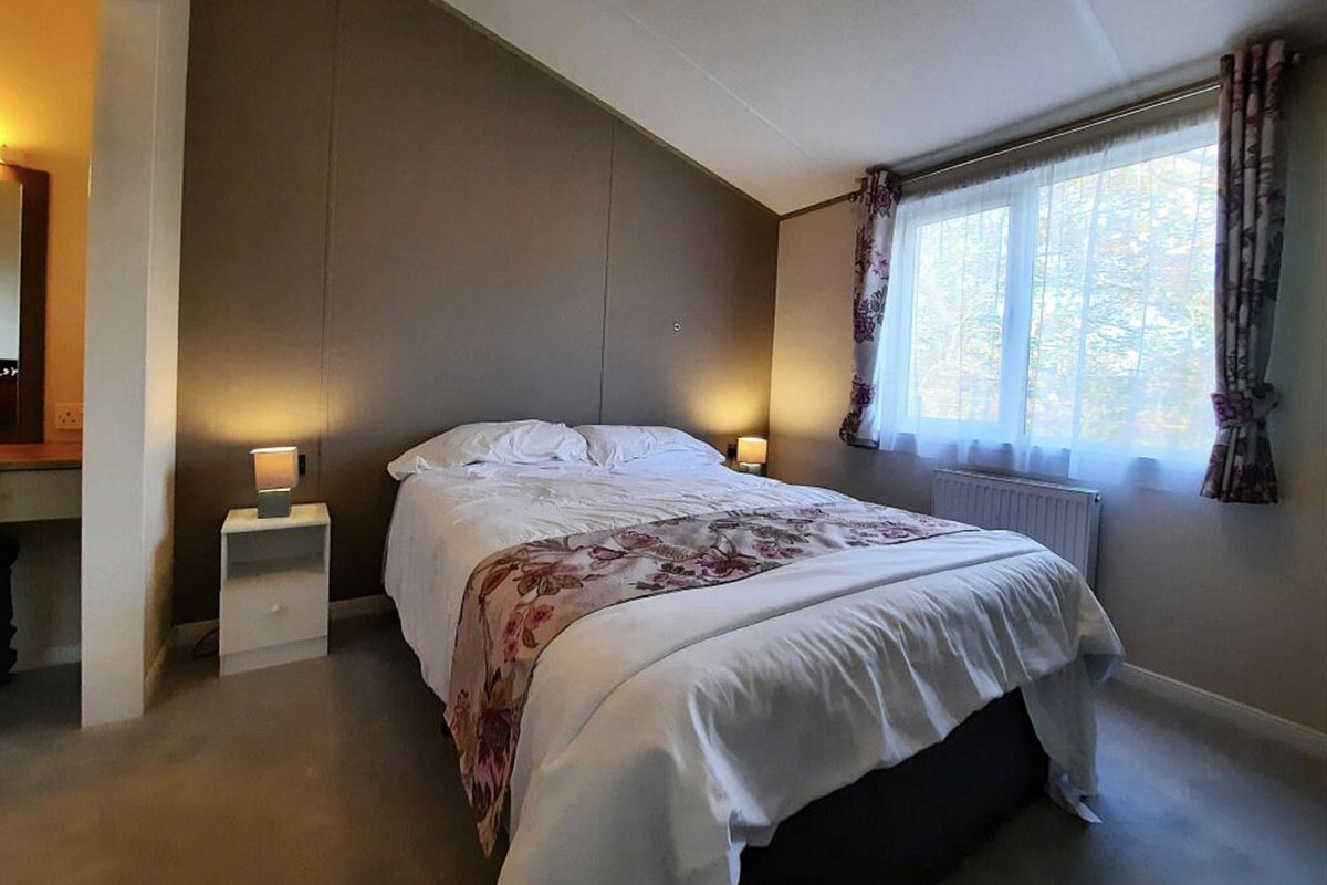 Outside, a private sun terrace enjoys peaceful views across the fishing lake, ideal for relaxing or dining outdoors. The property also benefits from front and side garden areas and driveway parking for two cars.